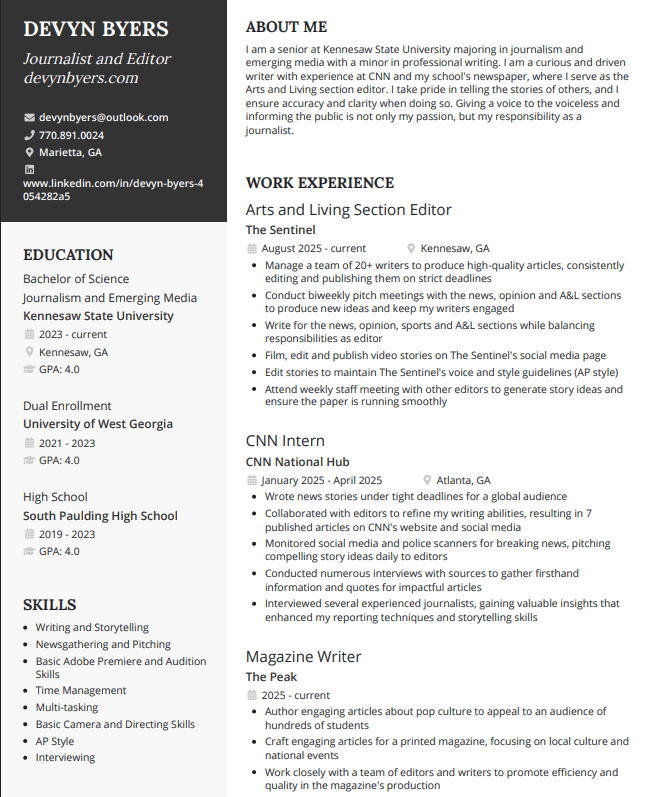 Kennesaw State University 2023-Present (Graduating in May, 2026)